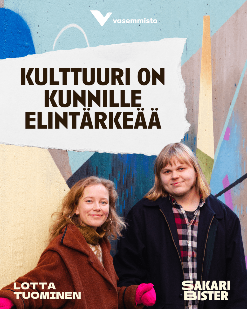 Valtio leikkasi kulttuuritoimijoiden valtionosuuksia 11 miljoonalla eurolla vuonna 2025. Kuntapäättäjät saattavat kokea kiusausta lähteä leikkaamaan valtion peesissä, mutta fiksu kunta ei toimi niin. Päinvastoin: kun valtio leikkaa suoria avustuksiaan kulttuuritoimijoilta, tulee kuntien ottaa vahvempaa roolia niin pääkaupunkiseudulla kuin maakunnissa.
